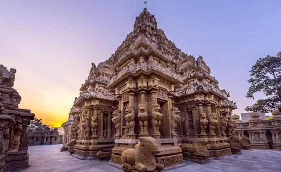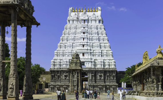 Ekambareswarar Temple at Kanchipuram is one among the “Pancha Bhoota Stalam” i.e., five Shiva temples each representing five elements of life. Ekambareswarar Temple is one of the most sacred Shiva temples and it represents the element Earth. Shiva is worshipped as Ekambareswarar in this temple and it is thousands of years old with the current structure being a reconstructed one, around 600 AD by the Pallavas.. The other significant features of the temple include the “Aayiram Kaal Mandapam” or the 1000 pillared hall, 1008 Shiv Lingams that adorn the inner walls of the temple and the ten musical pillars at the inner corridor of the temple.